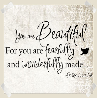 Growing up, I had low self-esteem and a poor self-image. I didn’t like the way my nose was shaped or how my eyes looked.fearfully&wonderfullyI definitely did not like my hair. I desperately wanted to look like the girls on TV. I wanted to look in the mirror and see myself as beautiful instead of ugly. The older I got, the better I became at masking my low self-esteem with a false confidence I would pretend to have. I didn’t want people to know how I really saw myself, so I would portray myself as this cool, confident young woman who was so sure of herself and didn’t care what people thought of her. That was so far from the truth. On the inside, I was growing more insecure by the day. The only time I felt pretty was when I had a boyfriend. I let them determine how I saw myself. Whenever they would cheat on me and abuse me physically and/or mentally, I was back in a low, depressed state. I would immediately begin to see myself in a negative light. I would always believe I deserved to be mistreated because I felt I wasn’t good enough.  I would think, “If only I were prettier, he would treat me better…if only I had this or I had that, he would be faithful to me.” Eventually, I snapped out of that. Thank God! I fell to the feet of Jesus. He had been waiting on me for so long. He showed me my value. He showed me my worth. He showed me that I am beautiful, that I am made in His image. I am fearfully and wonderfully made. He showed me that my value, my worth, my esteem comes from Him, not from them.